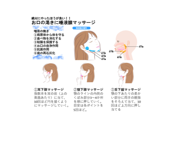 口臭・ネバつき・むし歯予防のためにも、「唾液腺マッサージ」や「生活習慣の見直し」で毎日しっかりケアしていきましょう。